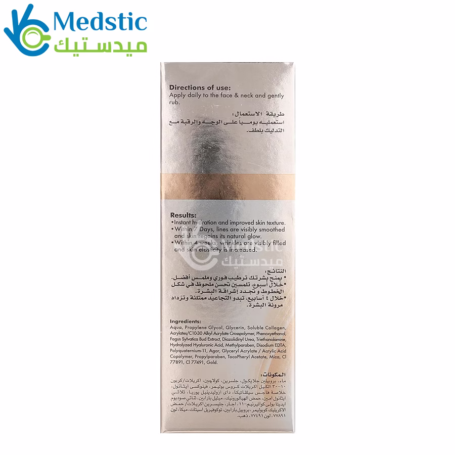 - يحتوي السيروم على الكولاجين الفعال الذي يعمل على دعم بنية الجلد وتحسين مرونته، مما يقلل الترهلات ويجعل البشرة تبدو مشدودة وصحية.