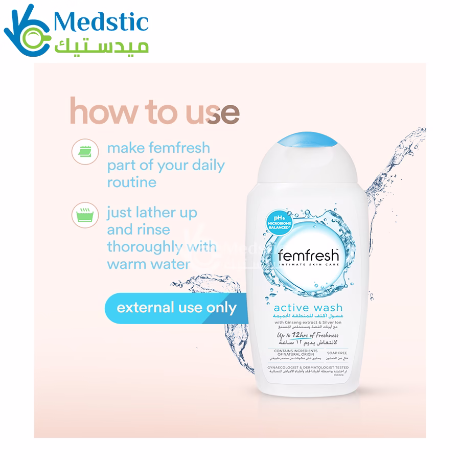 - يستخدم غسول فيم فريش للمنطقه الحساسه بشكل يومي من أجل تنظيف المناطق الحساسة.
